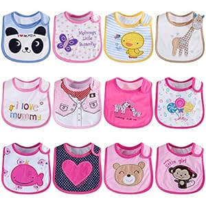 Lictin Lätzchen Baby 12er Baby Lätzchen Wasserdichtes Lätzchen aus Bauwolle mit Klettverschluss für Baby Mädchen
