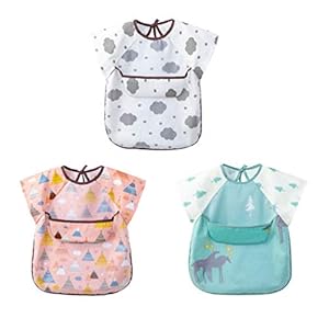 YuanDian Baby Lätzchen Kurzarm Cartoon Bedrucken Wasserdicht Abwaschbare Lätzli 3 Stück Set Licht Dünn Sabberlatz…