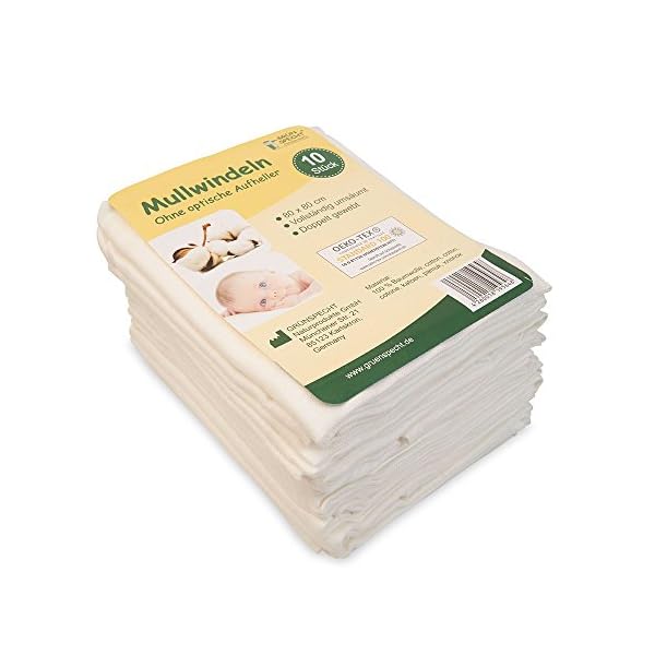 GRÜNSPECHT 564-00 Mullwindeln / Spucktücher / Baumwolltücher / Stoffwindeln – 10er Pack, 80×80 cm, weiß ohne optische Aufheller | PREMIUM QUALITÄT – schadstoffgeprüft, doppelt gewebt, extra weich , ÖKOTEX zertifiziert, 4-fach umsäumt, kochfest | Stoffwindeln & Mulltücher fürs Baby