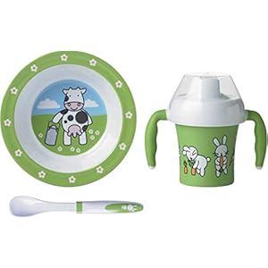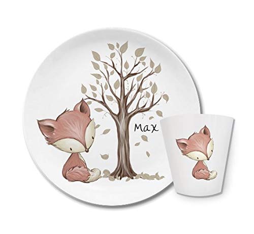 Das Set besteht aus zwei Teilen, Becher und Teller, Das Set wird in Deutschland hergestellt und ist für Lebensmittel geeignet. Es eignet sich für die Spülmaschinen aber nicht für die Mikrowelle. Das Set besteht aus hochwertigen Melamin Kunststoff. Produktdetails: Kinderteller aus Melamin, Größe von 235 ø Becher 200 ml, 80 mm hoch und 80 mm ø, der Becher ist nicht personalisiert.