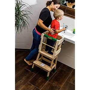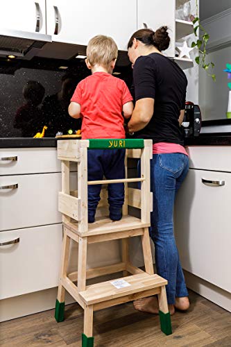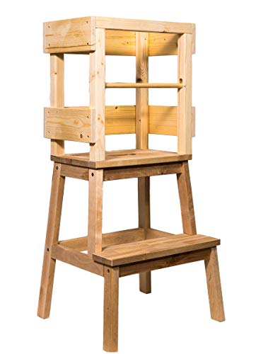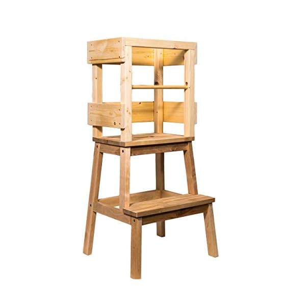 Ein Muss für jede Familie mit Kleinkind. Für unsere kleinen Entdecker haben wir genau das Richtige, um die Welt in der Küche, im Bad oder aber beim Opa in der Werkstatt zu entdecken! Der Lernturm von Kindino verleiht Ihrem Kind die Möglichkeit, die Geschehnisse auf Augenhöhe zu erleben. Gleichzeitig erleben Sie als Eltern oder Großeltern ein entspanntes Kochen mit einem Kleinkind und sehr viel Spaß beim Zähneputzen! Der Lernturm bietet durch den zusätzlichen Rund-Holzschutzstab mehr Sicherheit für Kleinkinder. Der Schutzstab ist sicher eingelassen und kann seitlich wieder herausgeschoben werden (siehe Bilder). Der Holz-Lernturm ist naturbelassen und unbehandelt. Für die Herstellung wird Kiefernholz und Birkenholz verwendet. Das Kiefernholz wird Regional aus dem Raum Schleswig Holstein bezogen. Das Filzset, wie auf den Bildern abgebildet ist kein Bestandteil des Angebotes. In einem weiteren Angebot finden Sie den Lernturm inklusive dem personalisiertem Filzset. Zusätzlich zum Lernturm erhalten Sie 4 Filzgleiter (weiße/schwarze Aufklebschutzgleiter – keine Filzsocken) für die Turmfüße, um Ihren Fußboden zu schützen und um den Turm einfacher zu bewegen. Achtung: Benutzung unter unmittelbarer Aufsicht von Erwachsenen Maße ca: Höhe 90 cm Breite 43 cm Tiefe 39 cm Gewicht ca 7 Kg Der Lernturm wird in einem großen Karton und in einem Stück versendet. Auspacken und hinstellen – keine Montage!