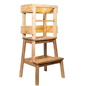 Der Holz-Lernturm ist naturbelassen und unbehandelt. Für die Herstellung wird Kiefernholz und Birkenholz verwendet.