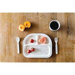 Produktabmessungen: Teller: 24 cm x 20 cm x 1 cm; Schüssel: 15 cm (Durchmesser) und 4 cm (Höhe); Becher: 7,5 cm (Durchmesser) und 10 cm (Höhe); Besteck: 13 cm