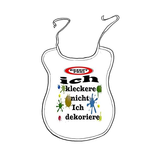 Ein lustiger Latz für Erwachsene (natürlich auch für Kinder geeignet) mit dem Aufdruck „Ich kleckere nicht, ich dekoriere“