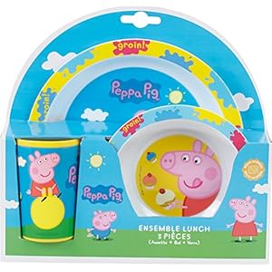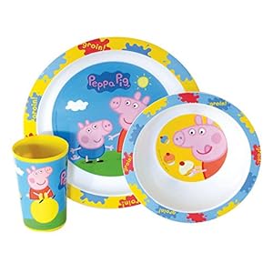PEPPA PIG Paket Mittagessen – Bestehend aus einem Teller und ein Glas – In Polypropylen – Boy und Girl – Ab 3 Jahre – Lieferung mit dem Ger�t