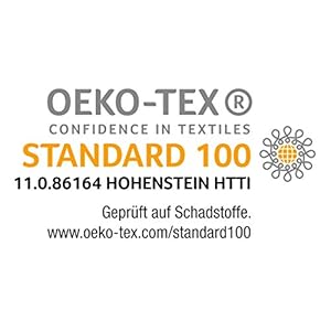 Textiles Vertrauen – Oeko-Tex-Standard 100 Klasse 1 vom Institut Hohenstein auf Schadstoffe geprüft (Prüf-Nr. 11.0.86164).