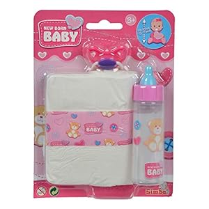 New Born Baby lädt mit ihren lebensechten Funktionen zum Rollenspiel ein. Die süsse Puppe kann wie ein echtes Baby mit Füttern, Baden, chlafen, Wickeln und aufs Töpfchen Gehen liebevoll von den Puppenmamis umsorgt werden. Dem fantasievollen Rollenspiel sind keine Grenzen gesetzt und schult spielerisch Motorik, Verantwortungsbewusstsein & Sozialkompetenz von Puppenmamis jeden Alters.Das New Born aby Erstes Pflegeset bringt zusätzlichen Spielspass und regt zum erweiterten Rollenspiel an. Das Fläschchen mit dem verschwindenden Inhalt fasziniert jede Puppenmami und macht das Flasche geben noch realistischer. Mit der zusätzlichen Windel und dem Schnuller können Puppen liebevoll von ihren Mamis umpflegt werden.Der Artikel ist für Kinder ab 3 Jahren geeignet und benötigt keine Batterien.