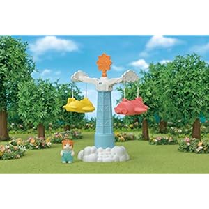 Riesigen Rummelspaß haben die Babys im Sylvanian Families Abenteuer Karussell. Schiebt man die Sonne am oberen Teil des Karussells nach oben und unten verstellt man die Höhe der Flugzeuge. Durch Drehen an der Sonne dreht sich das Karussell und die Baby Figuren fliegen in den Flugzeugen durch die Lüfte. Im Set ist das Karussell mit den beiden Flugzeugen und eine Ahornkatzen Baby Figur enthalten. Maße(BxHxT): 14x22x8cm. Figur ca. 4,5cm groß. Für Kinder ab 3 Jahren geeignet.