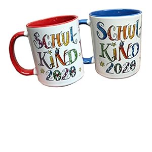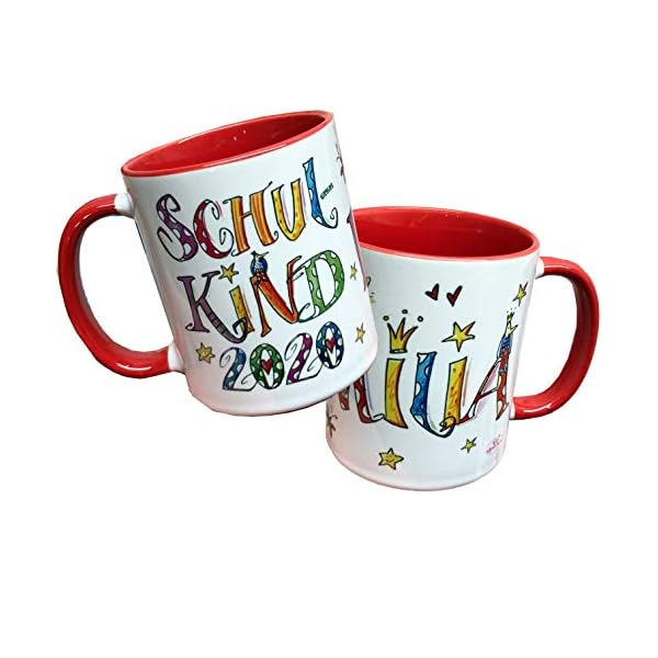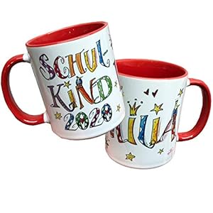 Eine tolle Keramiktasse als Geschenk für den Schulanfang 2020. Die Vorderseite wird beschriftet mit dem „Namen des Kindes“ und die Rückseite mit „Schulkind und dem Jahr“. Die Tasse ist innen in einer von sieben tollen kräftigen Farben und hat außen die schönen von mir gezeichneten Schriften und kleine Motive wie Sonne, Sterne ect.. Auf dem Foto sind 2 Beispiele abgebildet, das Angebot bezieht sich nur auf eine Tasse. Auf den anderen beiden Fotos kann man zB die Kindergarten-Tasse und die Abi-Tasse sehen, die ihr auch zusätzlich bestellen könnt.