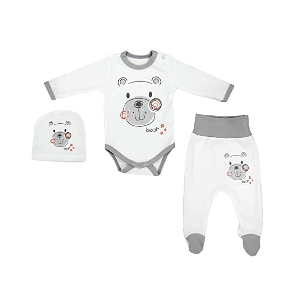 Baby Kleidung 3er Set: Langarm-Body mit Aufdruck, Mütze mit Aufdruck und passende Strampelhose für Mädchen und Jungen