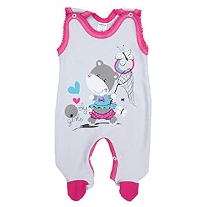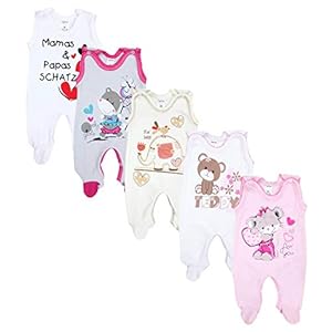 5er Set für Mädchen 2: weiß mit Spruch „Mamas & Papas Schatz“, ecru mit Elefant, rosa mit Maus, grau mit Flusspferd, weiß mit Bärchen (wie abgebildet)