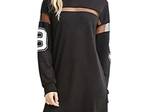 QIYUN.Z Frauen Schwarz Gedruckt Baseball T-Shirt Kleid Spleißen Lange Ärmel Mini-Rock