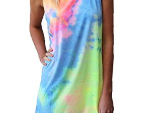 ZANZEA Damen Ärmellos Rundhals Mini Kleider Bunte Lose Longshirt Oversize Tank Tops