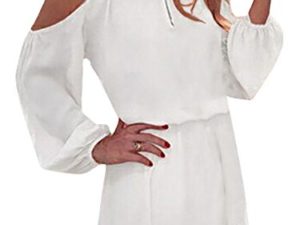YOINS Sommerkleid Damen Kurz Schulterfrei Kleid Elegante Kleider für Damen Strandmode Langarm Neckholder A Linie
