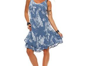 ZARMEXX Damen Sommerkleid Knielang ärmelloses Baumwoll Kleid Strandkleid V-Ausschnitt floraler All-Over Print