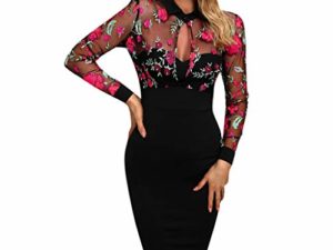 Your New Look Damen Netzkleid Patchwork Blumenstickerei Bodycon Kleid Sexy Revers Front Schlüsselloch Floral Mini…