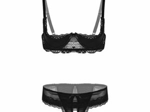 FEESHOW Damen Ouvert Dessous Set Sexy Offene Büstenhebe BH Slip Panty Set Leder Spitze Erotische Unterwäsche Versuchung…