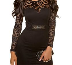 Koucla Elegantes Etuikleid mit Spitze – Langarm Abendkleid Minikleid Schwarz Weiss Rot S – XL
