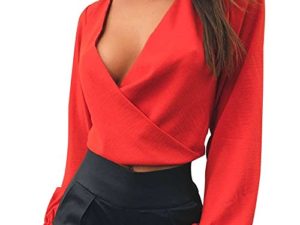 LAEMILIA Damen Crop Top Bluse Rückenfrei Tief V-Ausschnitt Clubwear Tunika mit Schleife am Rücken Abendmode Oberteil…