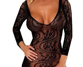 NAVARCH Damen Sexy Dessous Frauen Mesh Sexy Hollow Out Negligee Babydoll Wäsche Netzs Flexibel Wetlook Leder Minikleid…