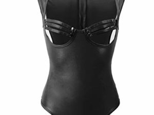 Shawa Damen Lingerie Leder Neckholder Push-Up Tiefer V-Ausschnitt Nachtwäsche Reizwäsche Sexy Dessous Negligee Kostüm…