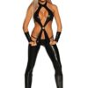 iEFiEL Damen Leder Body Brustfrei Bodysuit Wetlook Catsuit Strapsen Reizwäsche Leder Optik Wäsche Neckholder Overall…