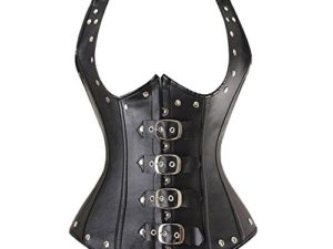 Beauty-You Damen Unterbrust Korsett Steampunk Kunstleder Mieder Stahlknochen Schnallen Schwarz