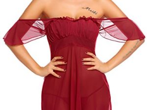 ADOME Dessous Erotik Set kalte Schulter Reizwäsche für Damen Sexy transparenter Spitzen 3/4 Ärmel Nachtwäsche Babydoll…