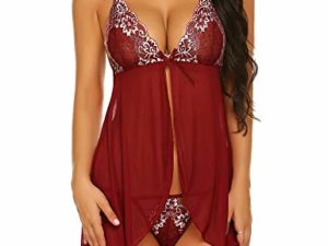 ADOME Damen Spitze Negligee Nachthemd Sexy Nachtwäsche Nachtkleid Lingerie Dessous Set Reizwäsche Sleepwear Kleid…