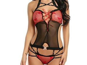 ADOME Dessous Strapse Set Damen Softcorsage Spitze Erotische Negligee Reizwäsche Reizvolle Lingerie 2-TLG mit…