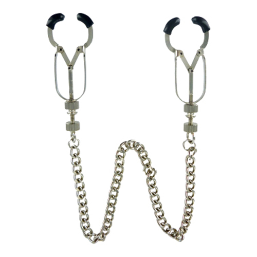 Diese Bauhaus Nippelklemme ist kräftig und besonders präzise. Mithilfe der jeweils an der Basis angebrachten Stellschrauben können Sie die beiden Klammern so eng einstellen, wie Sie möchten. Die Spitzen der Klammern sind mit Gummi umhüllt. Ihre Enden sind leicht gebogen und damit „griffiger“. Komplettiert wird dieses beherrschende Toy durch eine 30 cm lange Verbindungskette, die so besonders verlockend wirkt, wenn sie von den in den Klemmen gefangenen Nippeln Ihres Spielgefährten herunterhängt.