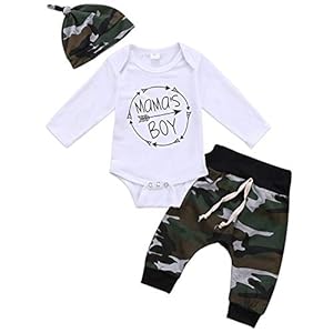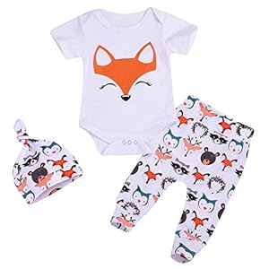 Geagodelia 3tlg Babykleidung Set Baby Jungen Kleidung Outfit Body Strampler + Hose + Mütze Neugeborene Kleinkinder…