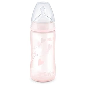 NUK Baby Rose First Choice Plus Babyflasche, kiefergerechter Trinksauger, 300 ml, 0-6 Monate, 1 Stück, rosa