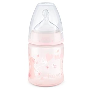 NUK Baby Rose First Choice Plus Babyflasche, kiefergerechter Trinksauger, 150 ml, 0-6 Monate, 1 Stück, rosa