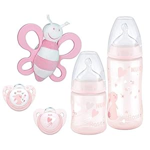 Nuk Baby Rose Starter Set First Choice Plus Babyflasche, Schnuller und Schmetterlingsrassel in attraktiver…