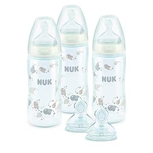 NUK First Choice Plus 3 plus 2 Set, Vorteils-Set mit PP-Babyflaschen und zwei Ersatzsaugern, BPA frei, 0-6 Monate