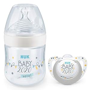NUK Babyflasche Set 2020 Edition | 1x Genius Schnuller | Nature Sense Babyflasche | 0-6 Monate | 150ml | BPA-frei | weiß