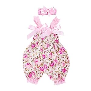 Knowin Babykleidung Mädchen Sommer 2019 Baby Blumendruck Laterne Riemen Overall + Haarband Zweiteiliger Anzug für Kinder…