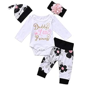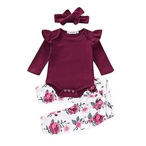 Geagodelia Babykleidung Set Baby Mädchen Kleidung Langarm Body Strampler + Hose + Stirnband Mütze Kleinkinder…