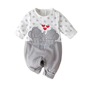 YONSIN Baby Body Süß Mädchen Junge Strampler Neugeboren Elefanten Druckn Babykleidung lustig Langarm Streifen Gespleißt…