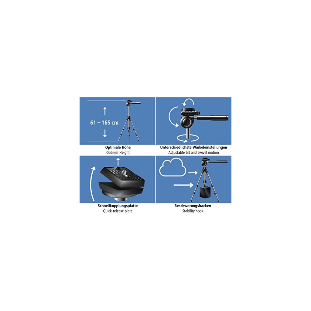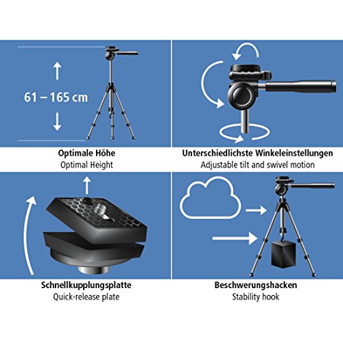 19/März Hama-Kamera-Stativ-Action-165-3D-Tripod-mit-61165cm-Hoehe-leichtes-Fotostativ-mit-3-Wege-Kopf-Dreibeinstativ-mit-Spikes-Kamerastativ-passend-fuer-Canon-Nikon-Sony-Olympus-inkl-Tragetasche-schwarz