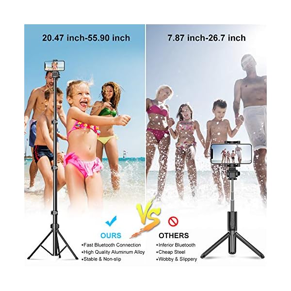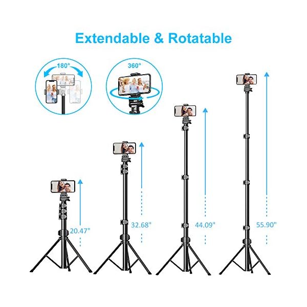 【Erweiterbar & Verstellbar】: Kann von 52cm auf 142cm flexibel erweiterbar sein und verfügt über einen um 360 ° drehbaren Handyhalter & einen um 180 ° drehbaren Kopf. So können Sie die gewünschten Fotos in einem beliebigen Winkel aufnehmen