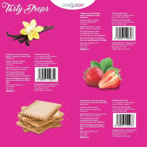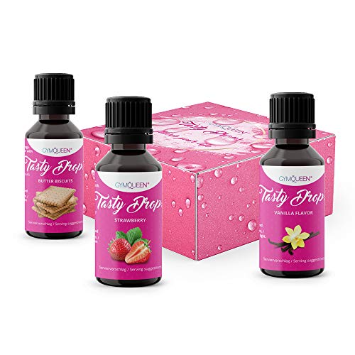 GymQueen Tasty Drops 3x30ml, Kalorienfreie, Zuckerfreie und Fettfreie Flavour Drops, Aroma Tropfen zum Süßen von…