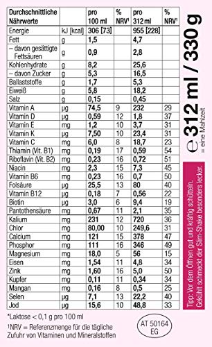 Schlank werden zum Mitnehmen: Die laktosefreien Slim-Shakes von Layenberger Gesund+Feelgood Nach sich ziehen Sie dasjenige „Weitestgehend Food welcher schlankmachenden Gattung“ schon probiert? Während herkömmliche Diäten ungefähr demotivieren, passen die Gesund+Feelgood Slim-Shakes perfekt in den Mühle. Eine Drinkflasche Gesund+Feelgood sättigt nachhaltig und ersetzt somit eine vollwertige Mahlzeit. Ob im Büro, hinauf welcher Baustelle, im Kundendienst oder leicht zu Hause – Zeit z. Hd. verknüpfen leckeren Gesund+Feelgood Slim-Shake ist immer. Er muss weder angerührt noch sonst wie zubereitet werden, sondern ist nachdem kräftigem Schütteln sofort verzehrfertig! Und schmeckt was auch immer andere qua nachdem Schonkost! Die leckeren Shakes sind joghurtfresh mit einem herrlich fruchtigen Gusto. Selten aromatisch und erfrischend schmecken sie übrigens gekühlt. Gen die leckeren Gesund+Feelgood Slim-Shakes können sich sogar die 15 % welcher Nation freuen, die an Laktoseempfindlichkeit bzw. an Laktoseintolleranz leiden. Jener Laktosegehalt welcher Layenberger Gesund+Feelgood Slim-Shakes liegt, wie für welcher laktosefreien Milch, für < 0,1 g Milchzucker pro 100 ml Slim-Shake. Inhaltsstoffe / Zutaten: JOGHURTERZEUGNIS MIT 1% FETT (84%), MILCHEIWEIß, Wasser, Maracujasaft aus Maracujasaftkonzentrat (2,5%), Fruktosesirup, Inulin, SOJAÖL, Prunus persica aus Pfirsichsaftkonzentrat (0,2%), färbendes Lebensmittel: Karottenkonzentrat, Verdickungsmittel: Johannisbrotkernmehl, Pektin. modifizierte Stärkemehl, Maltodexdrin, Süßstoffe: Natriumclycamat. Süßstoff-Sodium, Acesulfam-Kalium, Sucralose. Säureregulator: Citronensäure, Natriumcitrat. Kaliumhydrogenphosphat, Eisenlactat, Mangansulfat, Würzessenz, Vitamin A, DL-alpha-Tocopherylacetat, Thiaminmononitrat, Nicotinamid, Pyridoxinhydrochlorid, D-Vitamin H, Folsäure, Vitamin C, Cholecalciferol, Riboflavin, Calcium-D-Pantothenat.