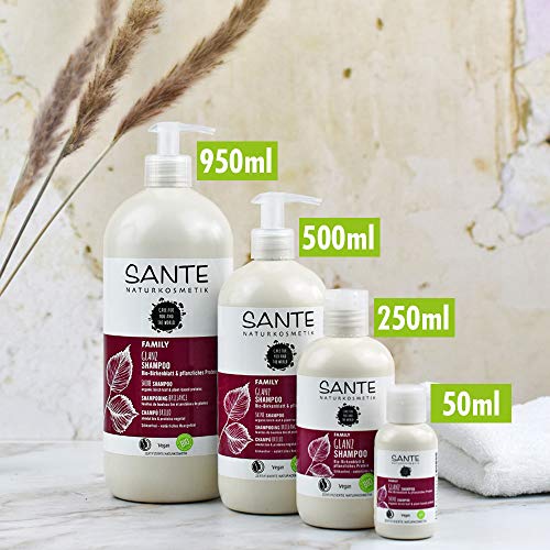 Dasjenige SANTE FAMILY Pracht Haarshampoo mit Bio-Birkenblatt und pflanzliches Protein pflegt trockenes, glanzloses oder normales Wolle von jener Haarwurzel solange bis in die Spitzen und dies 100 % natürlich