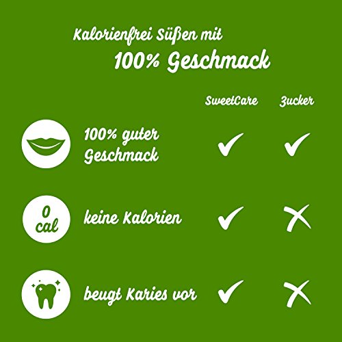 SweetCare ist welcher gesunde kalorienfreie Stevia Zucker. Zukunftsbild zum Nachlassen und im Zusammenhang einer Krankenkost (selten low carb). Ohne Reue und ohne Verzicht uff Süßes. Ideale Sonstige zu Xylit.