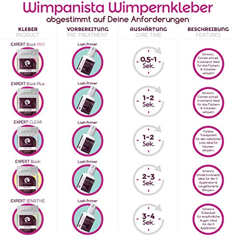 ☑️ ZUVERLÄSSIGE HALTBARKEIT: Der Wimpanista Expert SENSITIVE Wimpernkleber beeindruckt mit einer super Wimpern-Haltbarkeit. Applizierte Einzelwimpern halten bei Deinen Kundinnen bis zu 5 Wochen (je nach Pflege der künstlichen Wimpern). Für noch bessere Ergebnisse empfehlen wir die Vorbehandlung mit dem Wimpanista Primer (Haftverstärker)