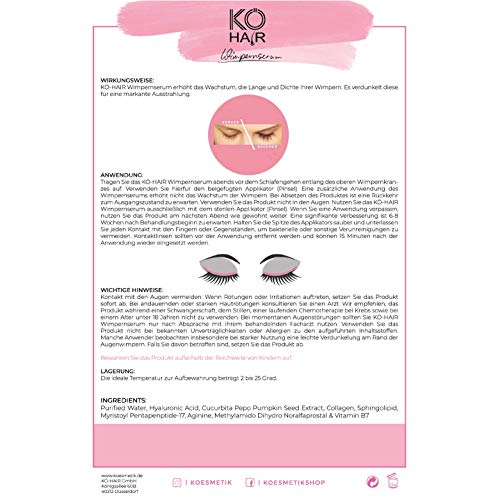 KÖ-HAIR Wimpernserum Wachstum Booster | Hochwirksames Serum für dichte lange Wimpern & schnelles Wimpernwachstum | MADE…