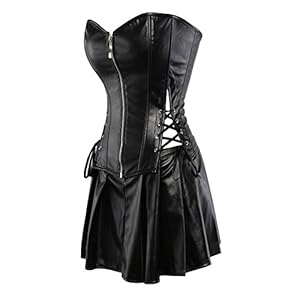 Grebrafan Damen Reißverschluss Korsett Kunstleder Corsage Rock