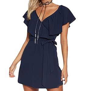 YOINS Kleid Damen Sommer Kurz V-Ausschnitt Schulterfrei Kleider Elegant Strandkleider Minikleid Partykleider